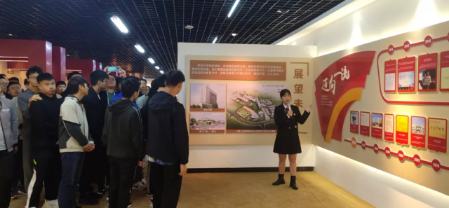 学姐(讲解员)为新生们讲解校史